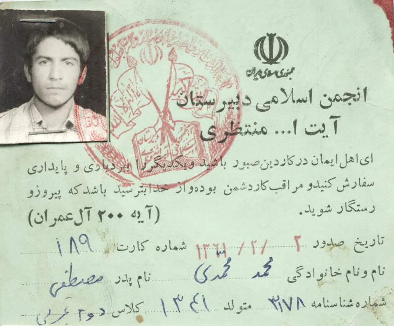 نجف آباد نیوز: برخی تلاش داشته و دارند به دلایل مختلف و توجیه هایی که شاید برای خودشان منطقی است، تاریخ نجف آباد را به سلیقه خودشان تحریف کنند. یکی از این موارد، نامگذاری دبیرستان آیت الله منتظری در خیابان ۱۵ خرداد شمالی به نام شهید محمد منتظری است. همه می دانند که این تغییر نام، در اواخر دهه ۶۰ و به دنبال غائله قائم مقام رهبری صورت گرفت. اسناد زیادی مثل این کارت های شناسایی وجود دارد که نشان دهد، نام اصلی این دبیرستان، به نام مرحوم آیت الله منتظری بوده است.